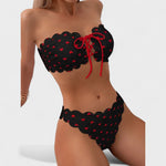 Com este biquíni encantador, cada dia de praia transforma-se num verdadeiro romance de verão. O padrão de corações vermelhos sobre fundo branco transmite leveza, feminilidade e diversão, enquanto o detalhe em laço e as bordas onduladas adicionam um toque delicado e vintage. Perfeito para quem adora destacar-se com charme e confiança, este biquíni é uma ode ao amor-próprio e aos dias de sol.