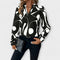 Esta blusa combina um estilo elegante e clássico com um toque moderno graças ao padrão geométrico preto sobre um fundo bege. O tecido leve de poliéster torna-a ideal para a primavera, o verão e o outono, enquanto o clássico decote em V e as mangas compridas oferecem um visual universal e elegante.