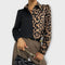 Actualize o seu guarda-roupa com esta blusa apelativa que combina o preto clássico com um estampado de leopardo arrojado.