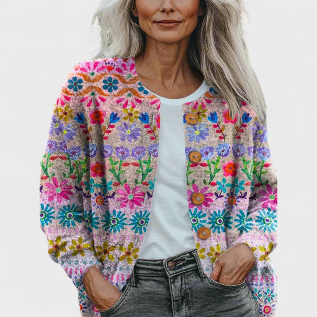 Lara - Sweatshirt casual às riscas de manga comprida e gola redonda