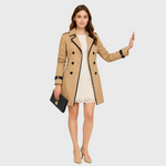 Experimente a sofisticação intemporal com este casaco trespassado. A sua silhueta estruturada e elegante combina o charme clássico com detalhes modernos, como o acabamento contrastante na gola e nos punhos. Fabricada numa mistura de poliéster durável, oferece aquecimento e estilo, ideais para o outono e inverno.