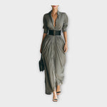 Um vestido-camisa que combina a estética sofisticada com a praticidade, conferindo elegância sem esforço a qualquer look. O seu design flexível torna-o ideal para todas as ocasiões, desde as casuais às mais especiais, enquanto o seu corte solto garante conforto e liberdade de movimentos. Com o seu corte minimalista, é uma peça intemporal que se adapta facilmente a qualquer estilo.