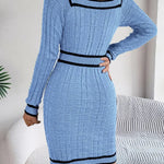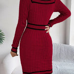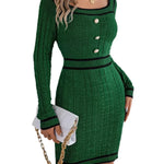 Entre numa elegância refinada com este vestido casual que realça a sua silhueta, mantendo um ar sofisticado. Com o seu decote quadrado, detalhes em botões e padrão de malha estruturada, é a combinação perfeita entre o estilo moderno e a elegância intemporal.