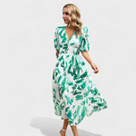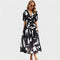 Com um padrão arrojado e moderno, este vestido é a fusão perfeita entre estilo e expressão artística. O corte midi com decote em V e mangas abalonadas realça a silhueta com elegância e atitude, tornando-o ideal para mulheres que gostam de marcar presença com sofisticação e originalidade.