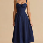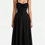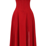 • Corte favorecedor - O top de corpete cria uma silhueta deslumbrante, enquanto a saia rodada adiciona um toque feminino. O fecho com amarração nas costas pode ser ajustado para um ajuste perfeito.