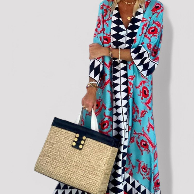 Este vestido de primavera combina estilo descontraído e sofisticação, ideal para os dias mais quentes. O seu design fluido, com estampas vibrantes e modernas, faz com que se destaque em qualquer ocasião. Perfeito para um passeio, um almoço ao ar livre ou até para um evento casual, o vestido oferece uma sensação de frescura e liberdade, sem perder a elegância.