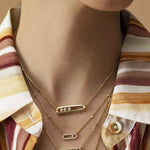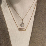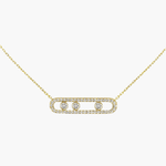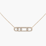 O nosso requintado colar Melissa em ouro amarelo, prata ou ouro rosa e diamantes caracteriza-se por três diamantes em movimento e de lapidação brilhante. O design em filigrana com um elegante pavé realça o brilho dos diamantes.